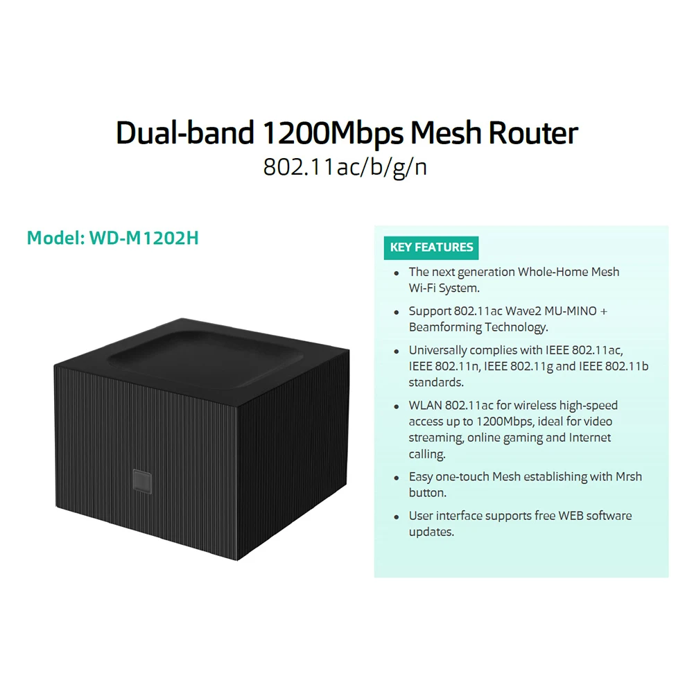 Specification: WD-ME5 (100Mbps Network port) WD-ME5G (Gigabit Ethernet Port) WD-ME6G(wifi6MESH)