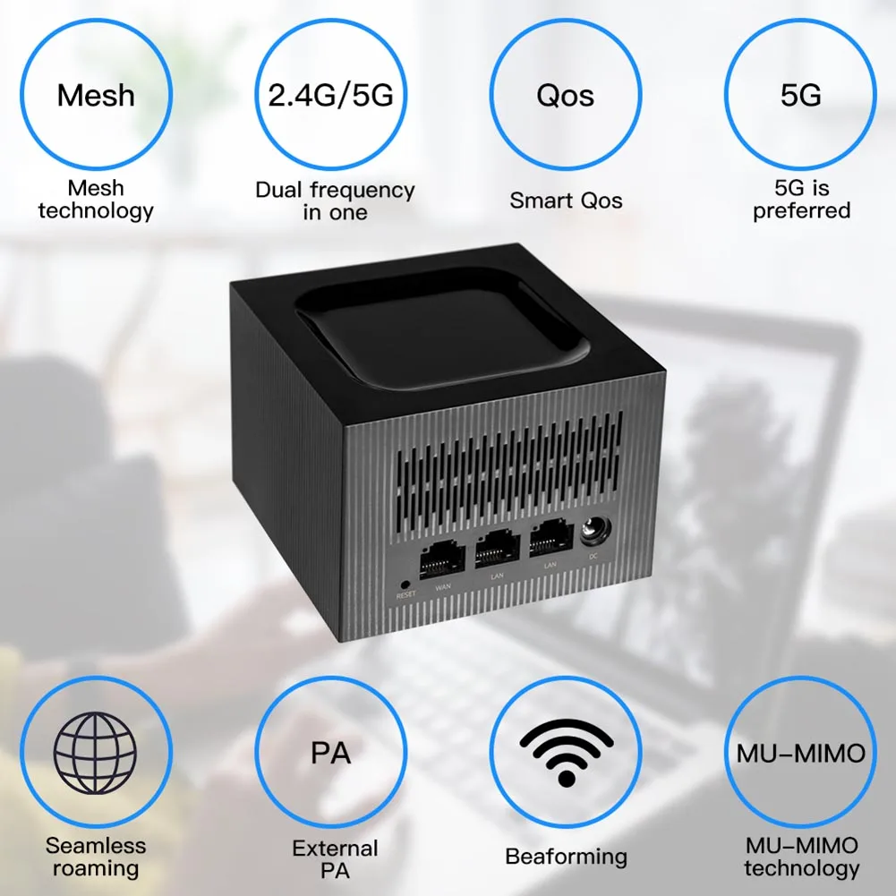 1200Mbps WiFi Mesh Router System with 2.4G/5.0GHz Dual Band Wifi Router Repeater Easy Set APP Remote Manage Wireless WiFi System