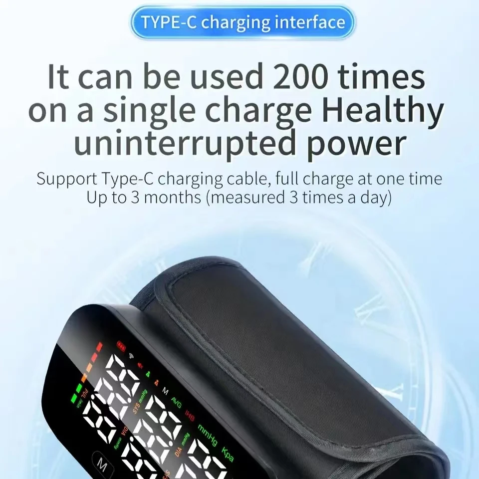 Our Bluetooth blood pressure monitor is an intelligent health device with English voice prompts and high-definition LCD display, designed to provide you with accurate blood pressure measurement data. It adopts advanced Bluetooth technology and can easily connect to your smartphone or tablet, allowing you to monitor your health anytime, anywhere.